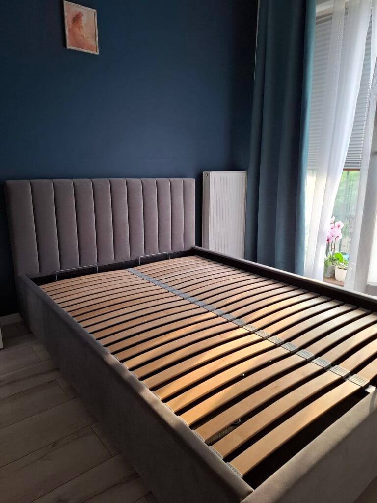 Model UNO to propozycja dla osób ceniących prostotę, elegancję i szybki termin realizacji. Jest dostępny w dwóch modnych kolorach – beżowym i szarym – oraz w popularnych wymiarach 140×200 i 160×200. Nasza realizacja obejmowała montaż łóżka w wersji 140×200 w kolorze szarym.