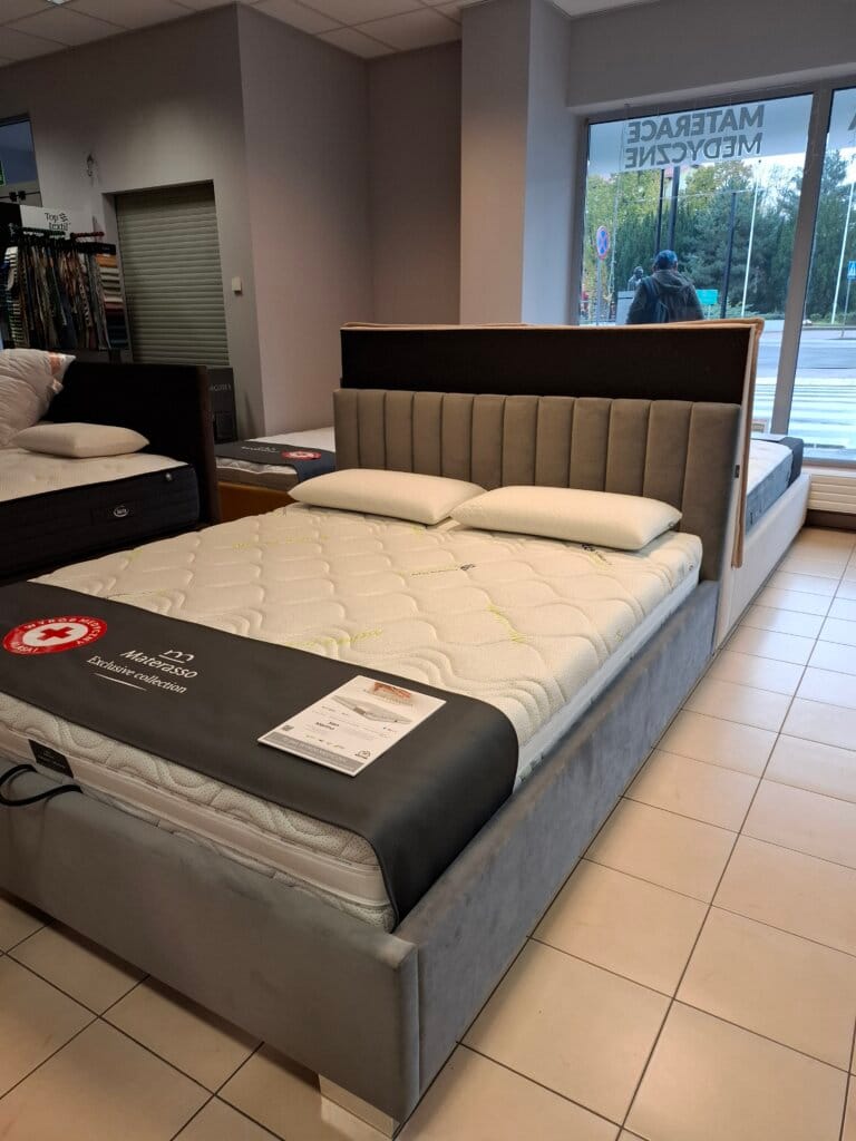 W galerii poniżej zobaczysz zdjęcia naszego sklepu z materacami, dostępnych modeli łóżek, materacy i dodatków do sypialni. To inspiracja dla wszystkich, którzy marzą o pięknym i funkcjonalnym wnętrzu, dopasowanym do własnego stylu.
